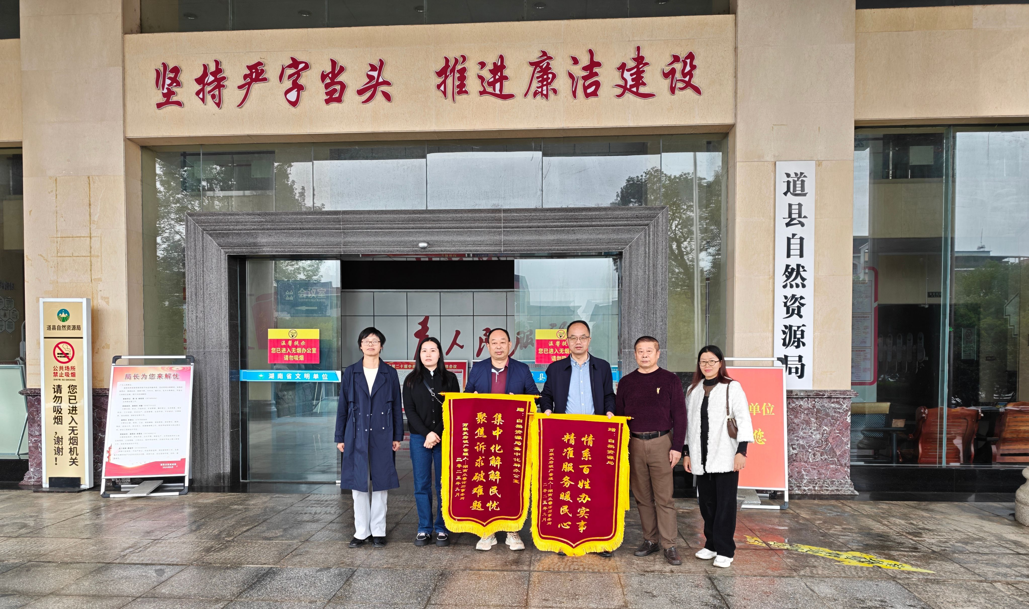 道县自然资源局以此为契机,多措并举推进不动产“登记难”问题集中整治,强化源头监管,严防新增问题。截至目前,省、市交办和摸排的不动产“登记难”问题化解率达100%,今年共获赠办证群众赠送锦旗达16面。2023年、2024年度,该县营商环境不动产登记工作连续两年被评为全市第一、全省优秀,其相关经验获湖南日报、红网新时刻、省自然资源厅网、永州日报等媒体报道,并在永州新闻联播、湖南卫视新闻中播出。