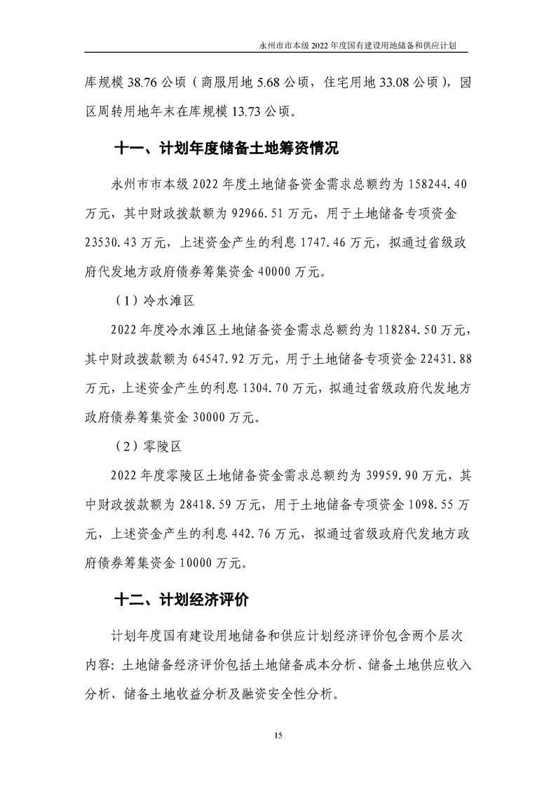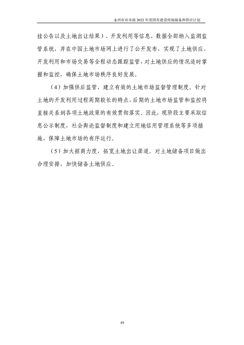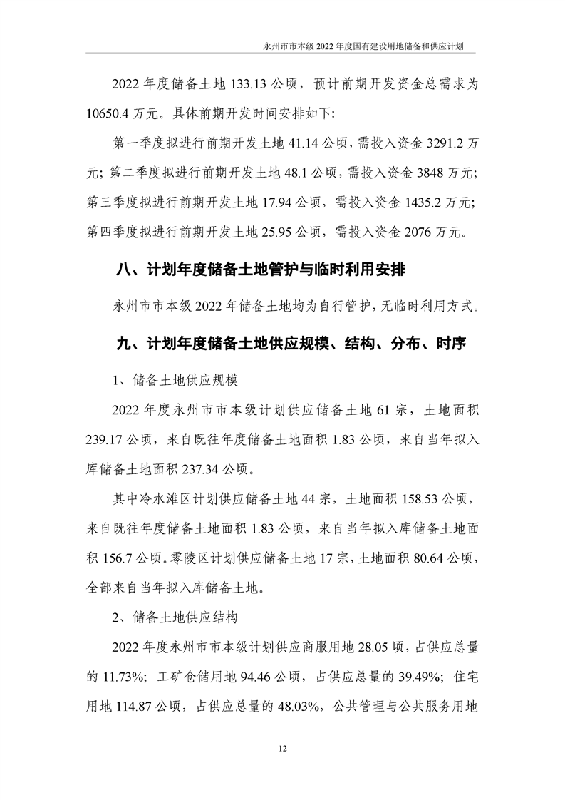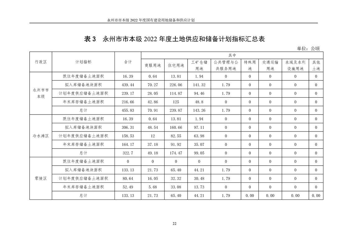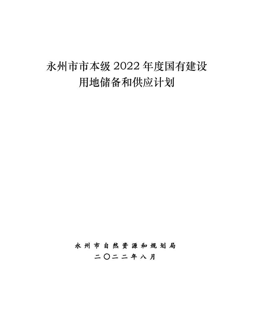 名称: 永州市市本级2022年度国有建设用地储备和供应计划