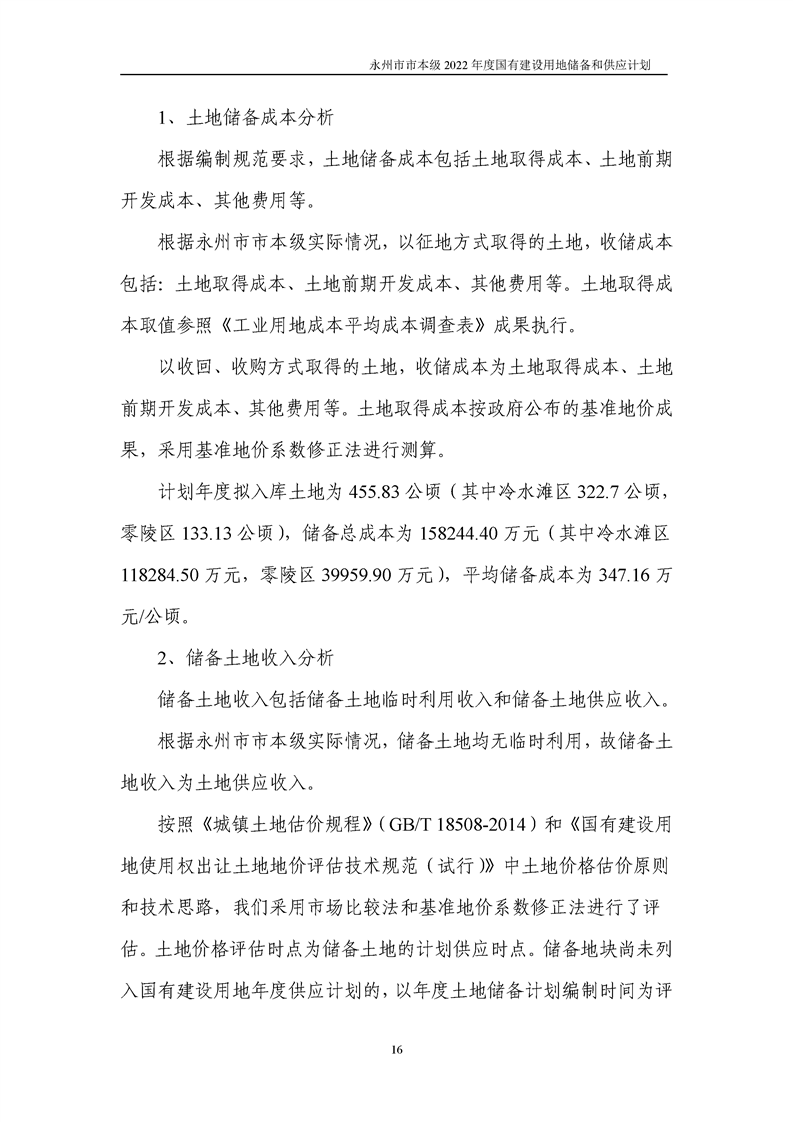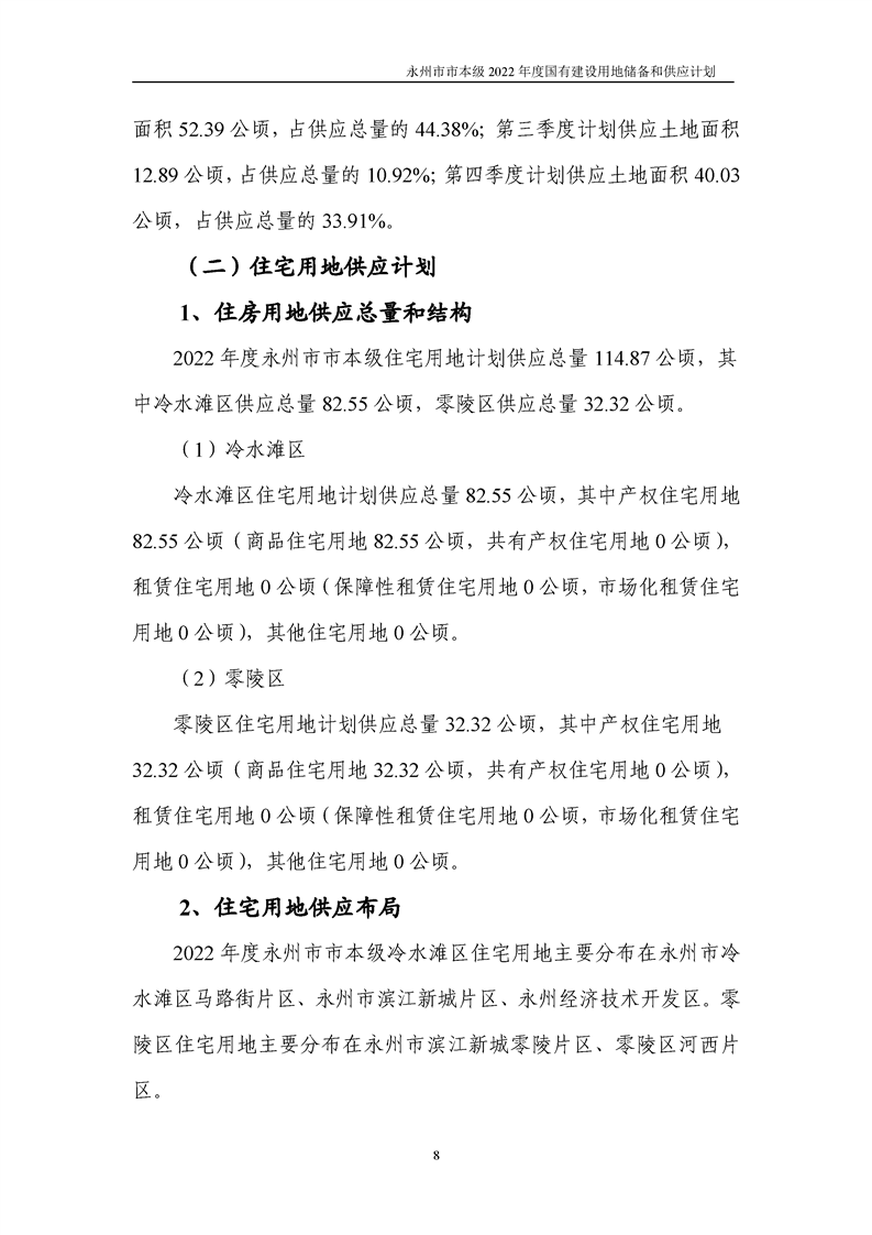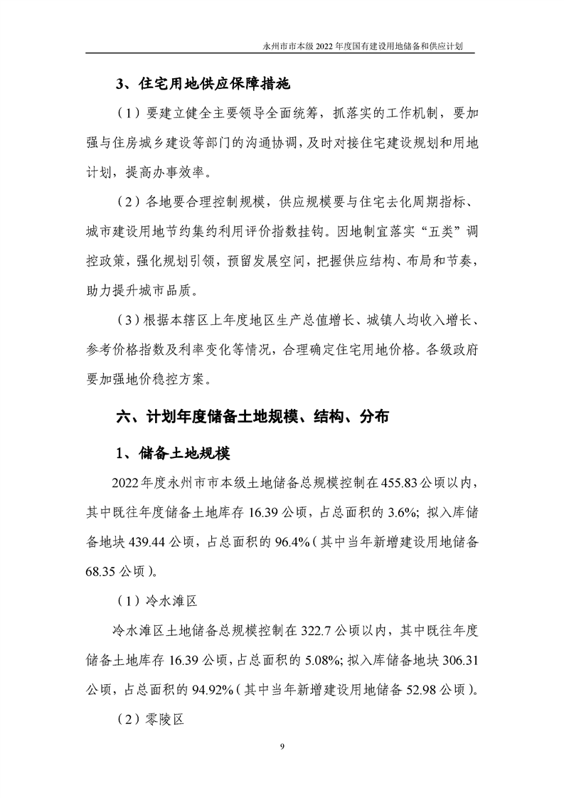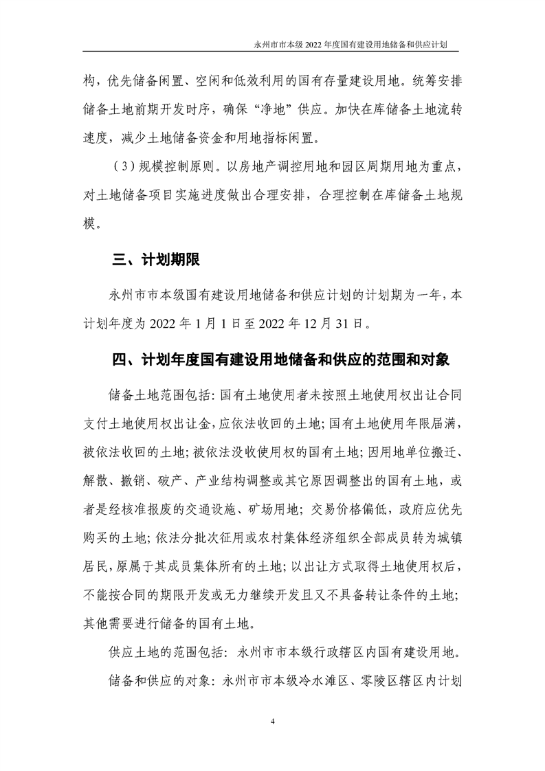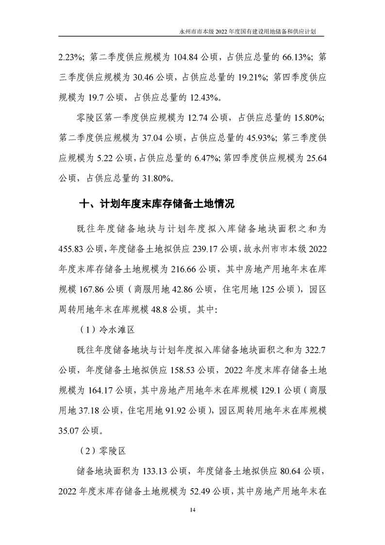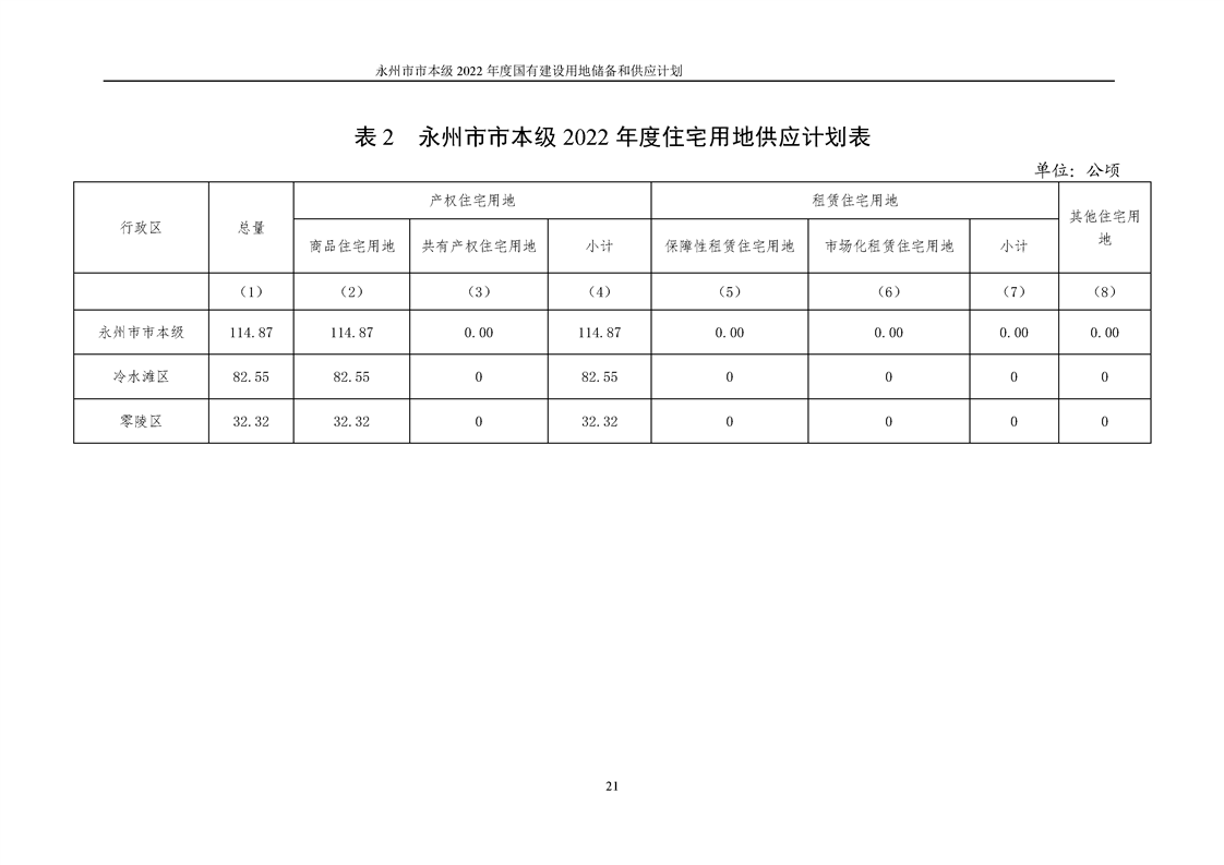 名称: 永州市市本级2022年度国有建设用地储备和供应计划