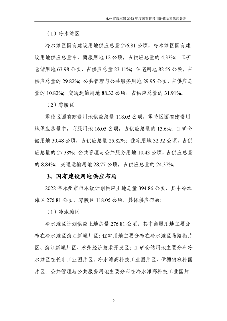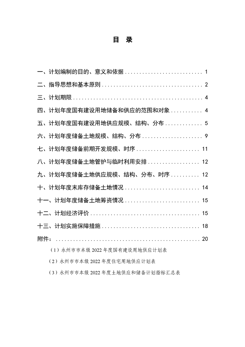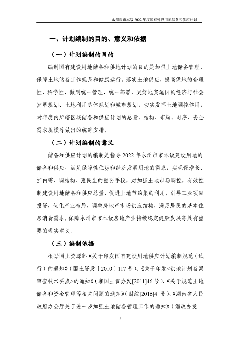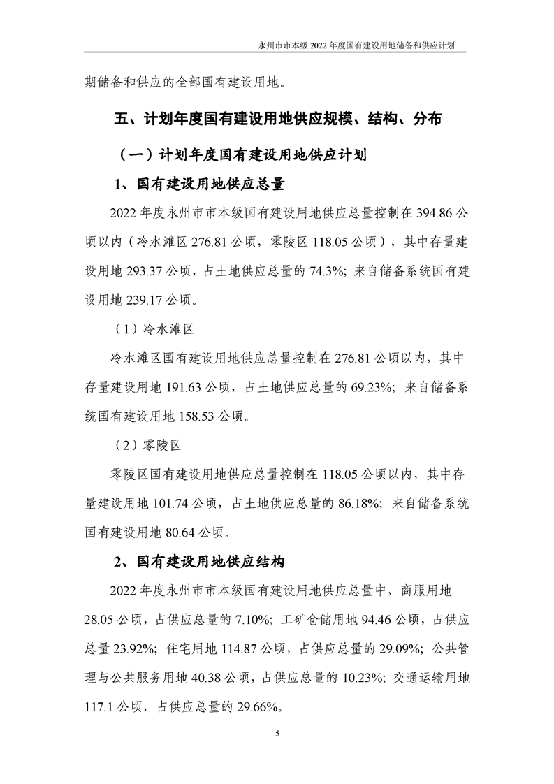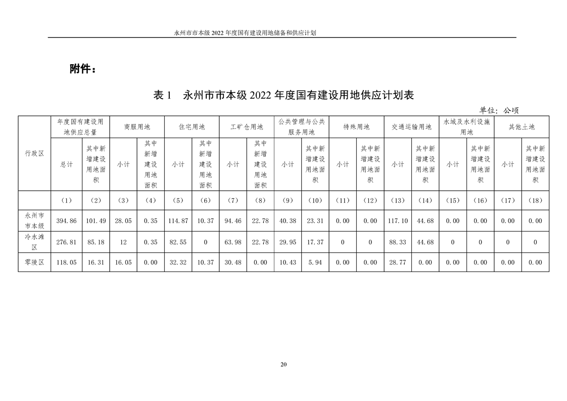 名称: 永州市市本级2022年度国有建设用地储备和供应计划