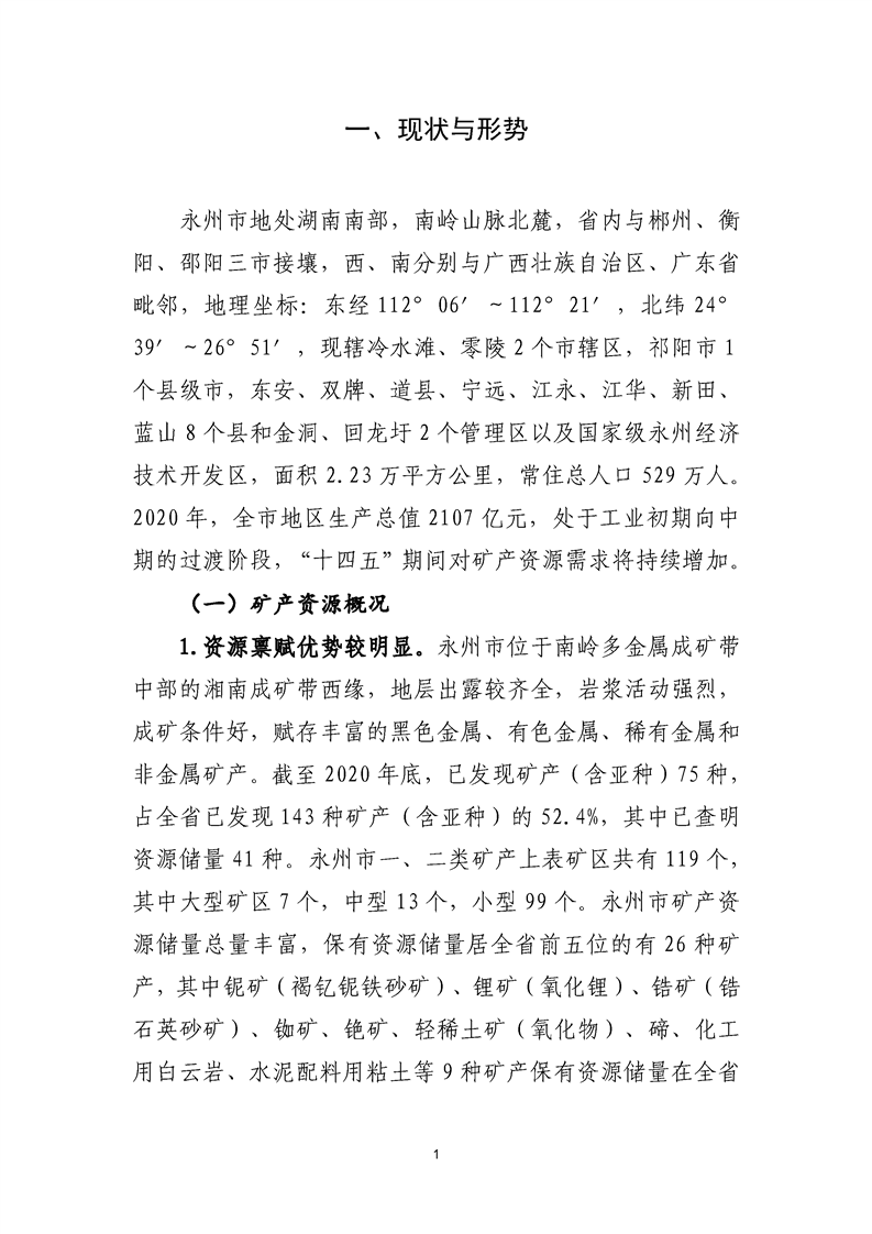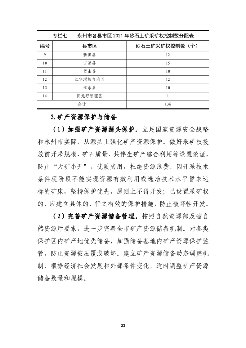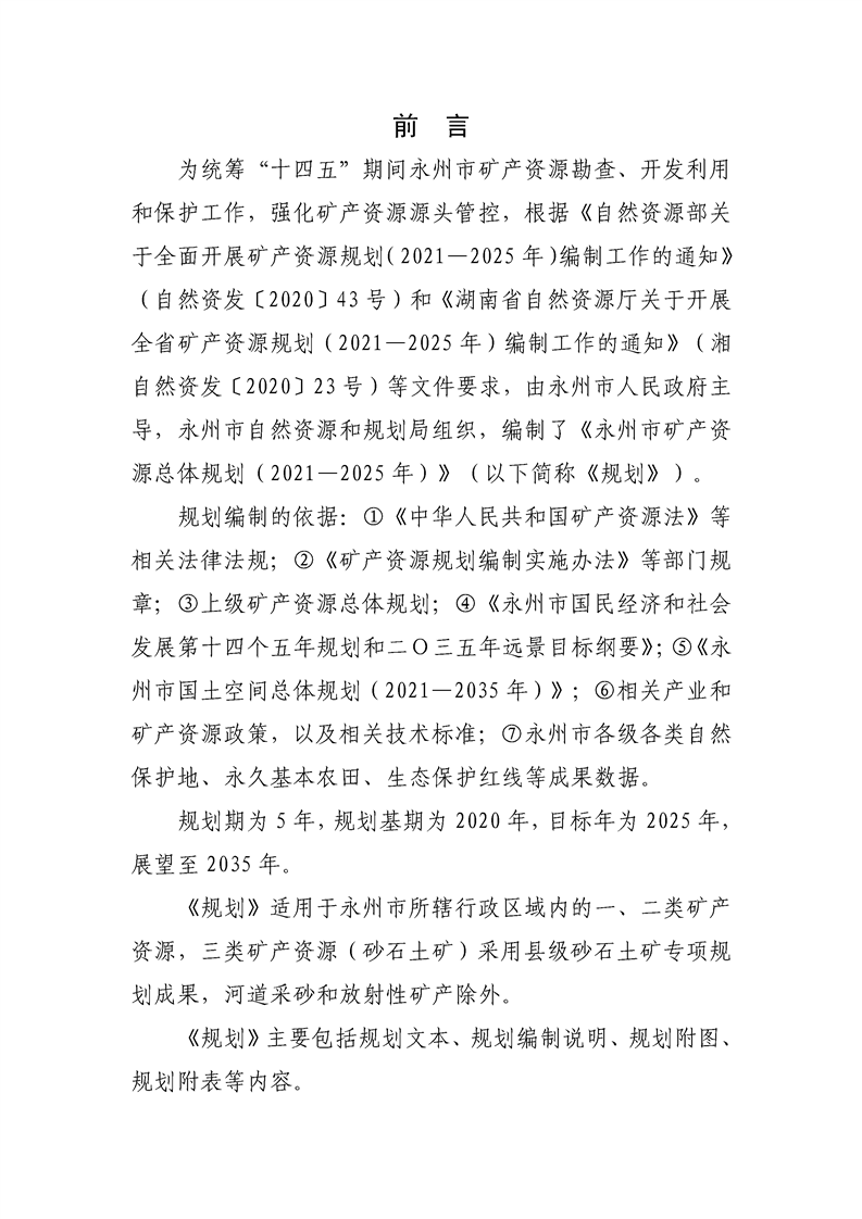 博彩网址导航关于印发《永州市矿产资源总体规划(2021-2025年)》的通知