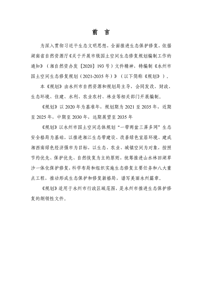 永州市国土空间生态修复规划(2021-2035年)