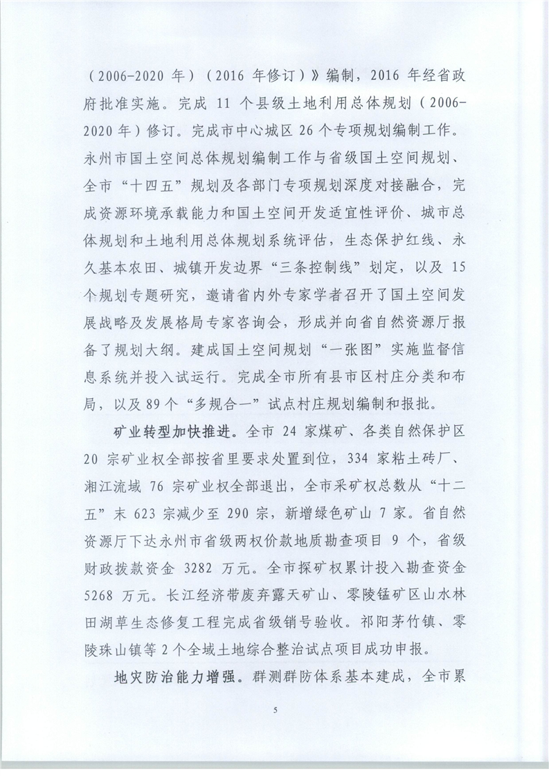 博彩网址导航关于印发《永州市“十四五”自然资源发展规划》的通知