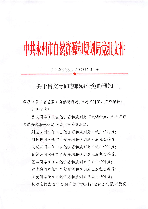 名称: 关于吕文等同志职级任免的通知