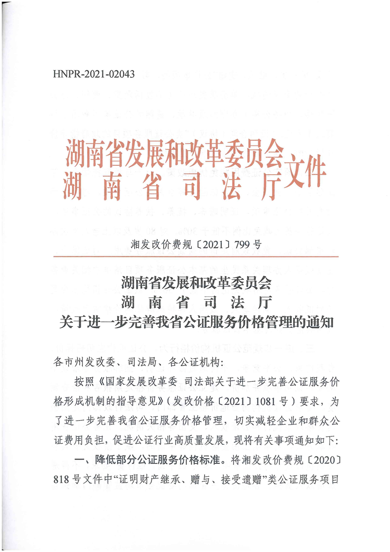 公证收费文件标准