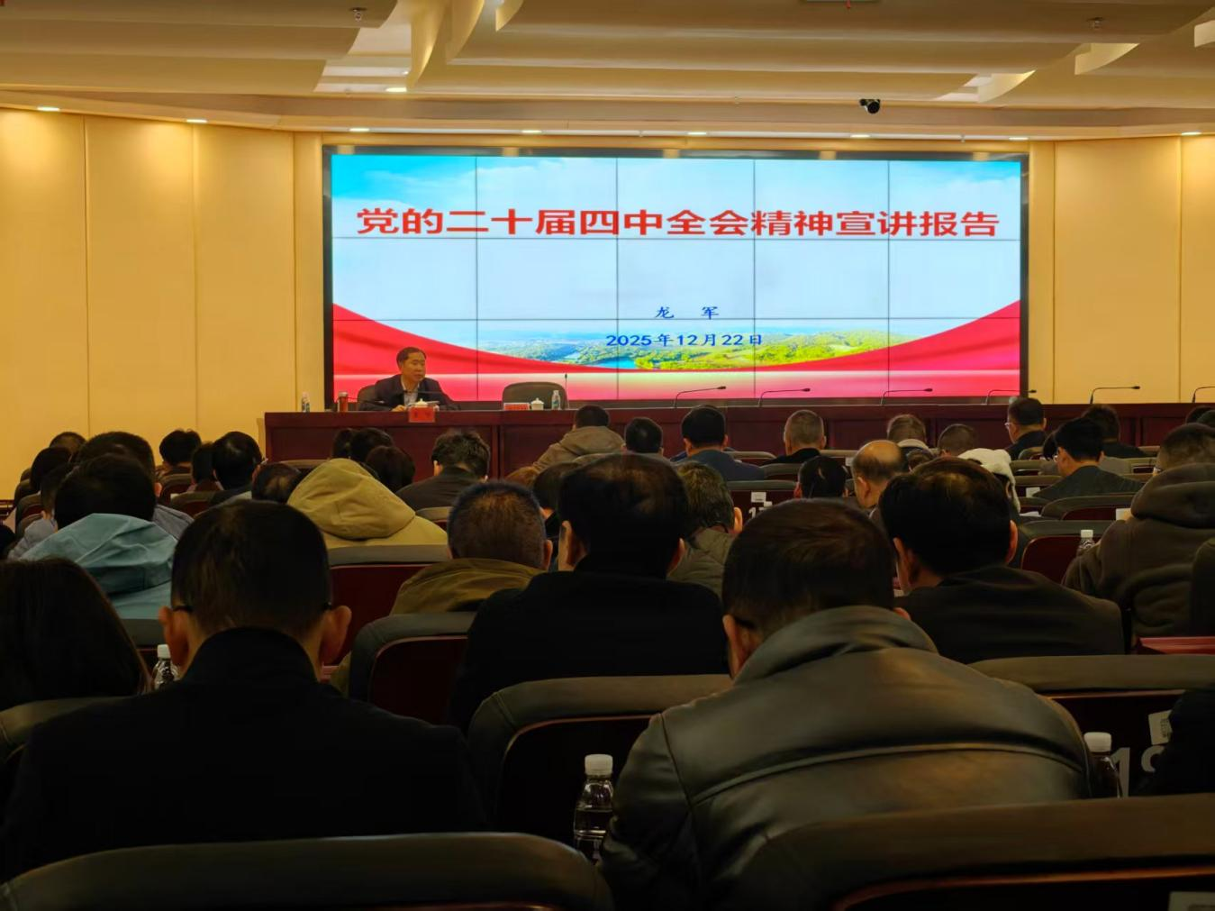 根据市委统一部署,12月22日,博彩网址导航举办学习贯彻党的二十届四中全会精神市委宣讲团报告会。市委宣讲团成员、局党组书记、局长龙军作宣讲报告。