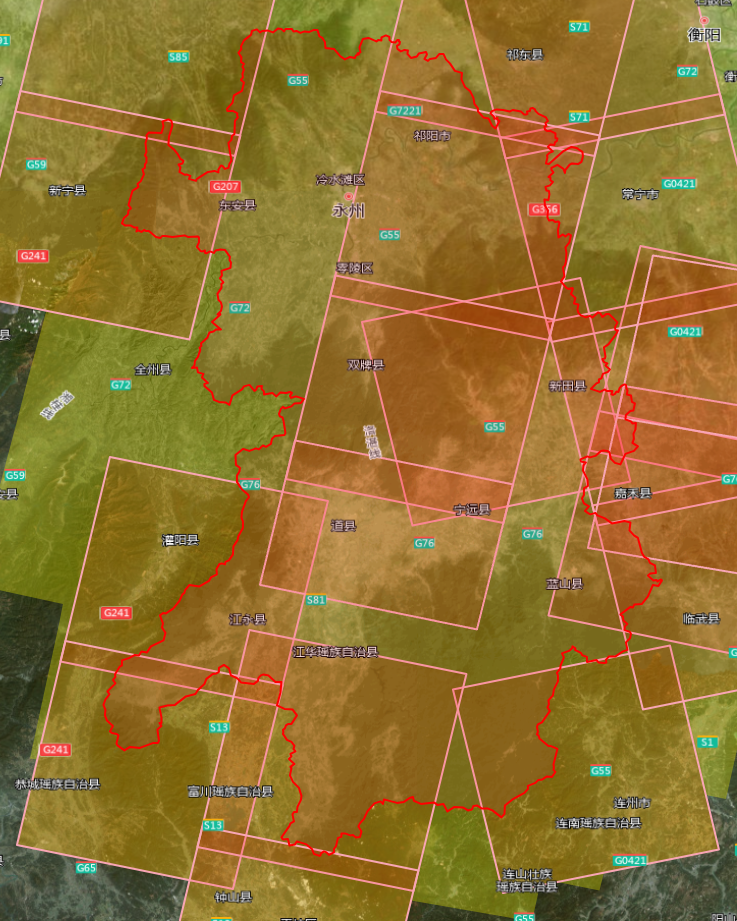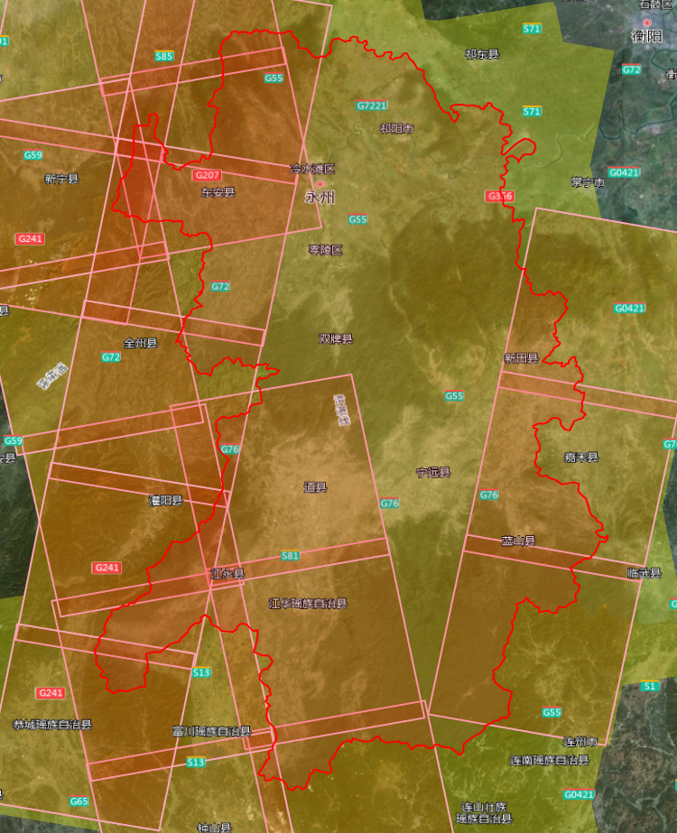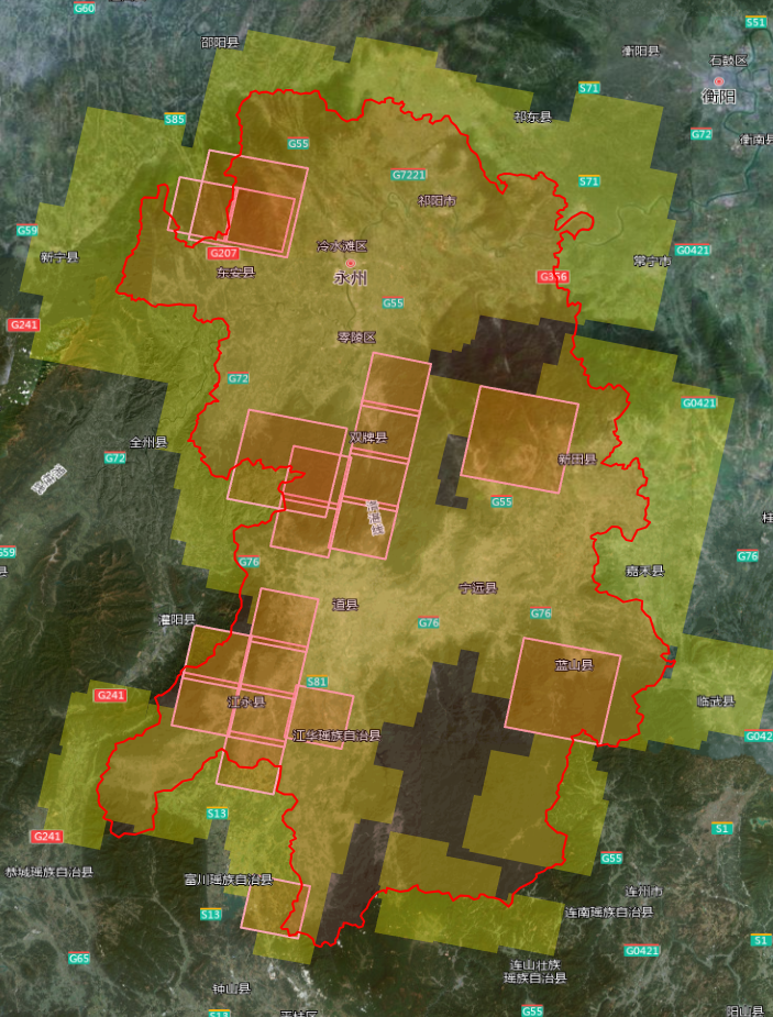 其中,0.5m分辨率光学影像共82景,覆盖永州市中心城区、东安县、江华瑶族自治县、新田县、宁远县、双牌县等局部区域。