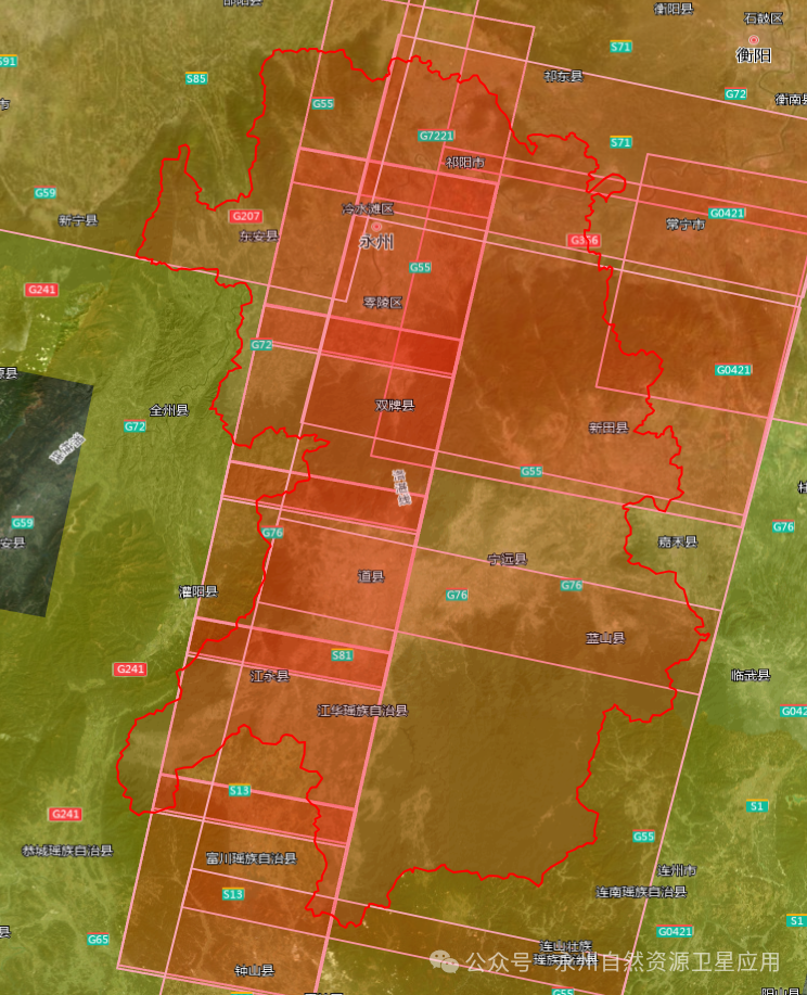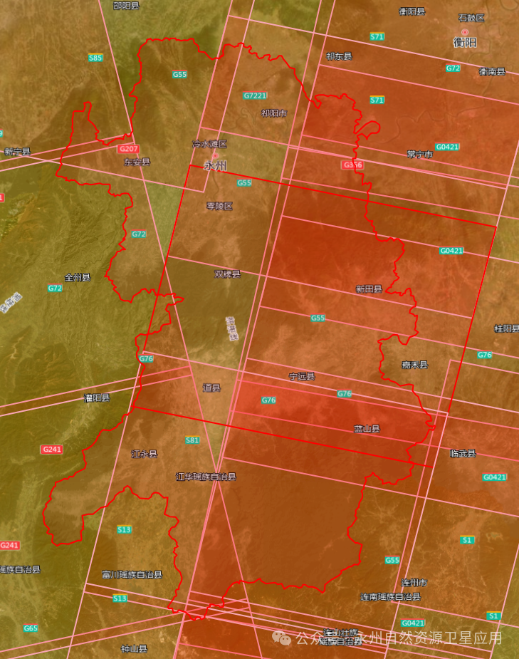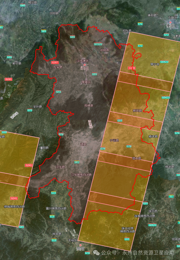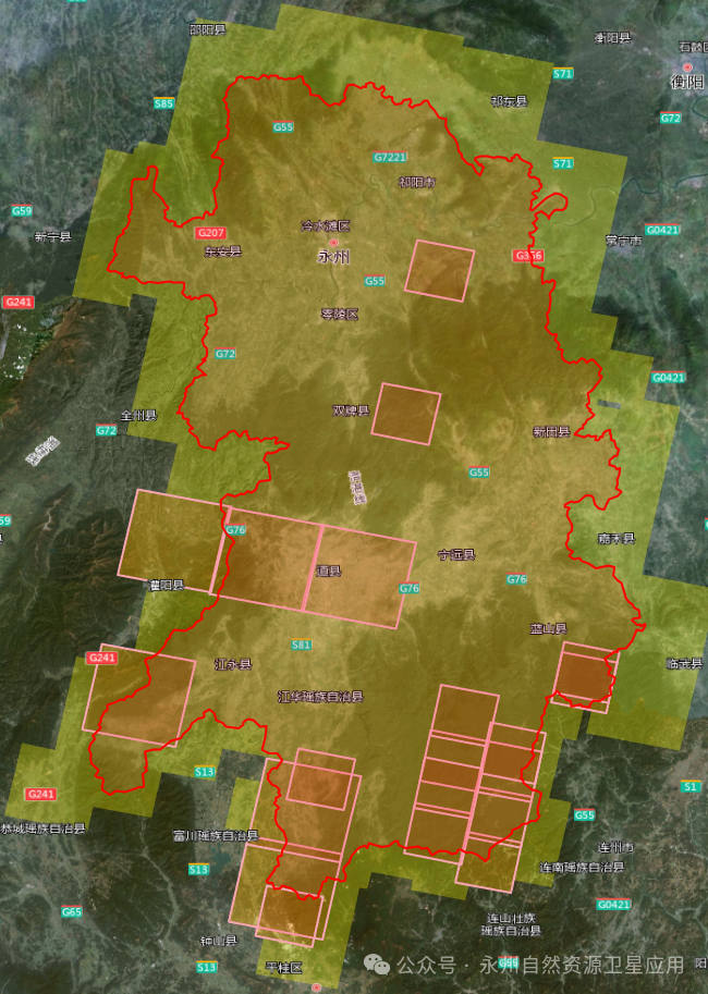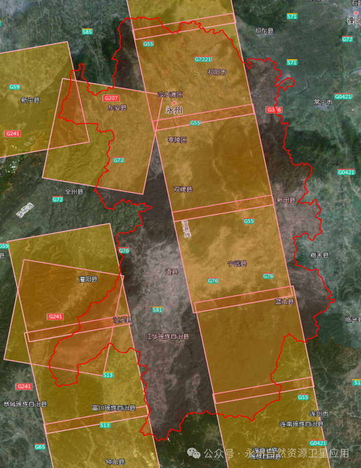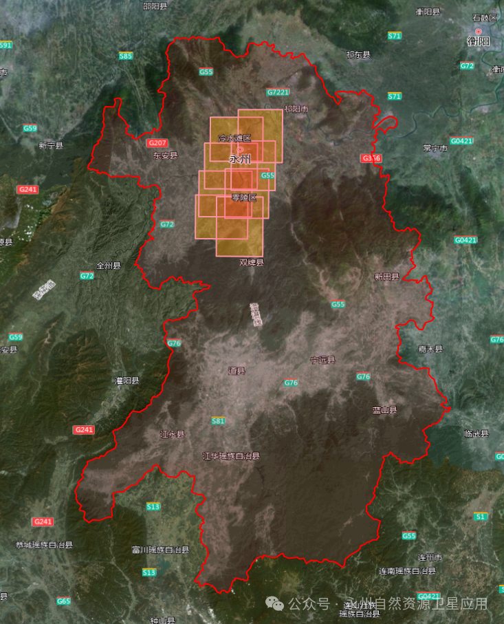 其中,0.5m分辨率光学影像共8景,覆盖冷水滩区、零陵区等局部区域: